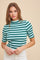 A striped ribbed top featuring a mock neckline and short fitted sleeves.