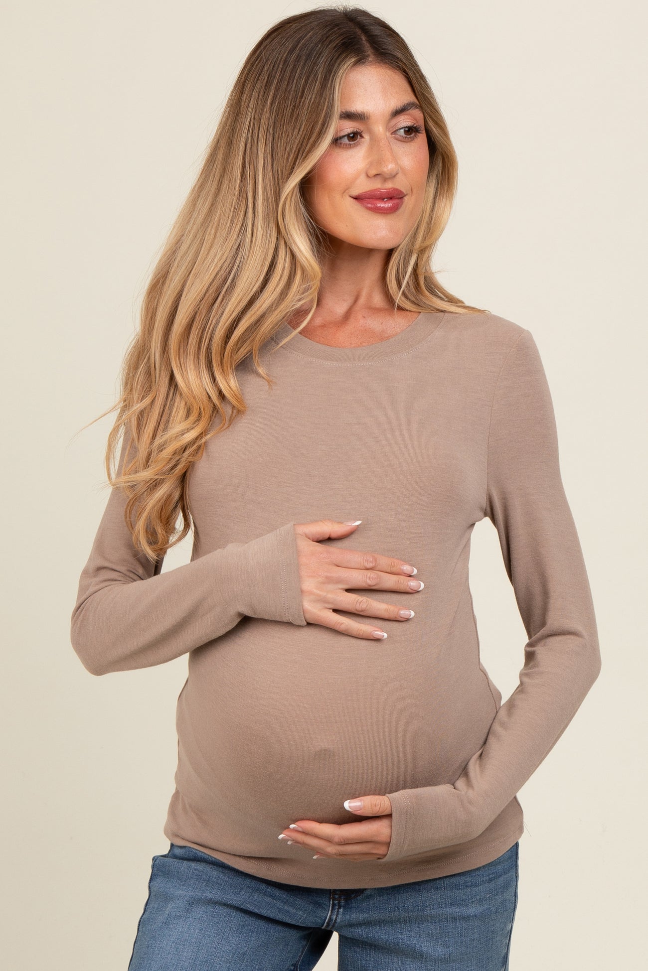 Mocha Basic Fitted Maternity Long Sleeve Top