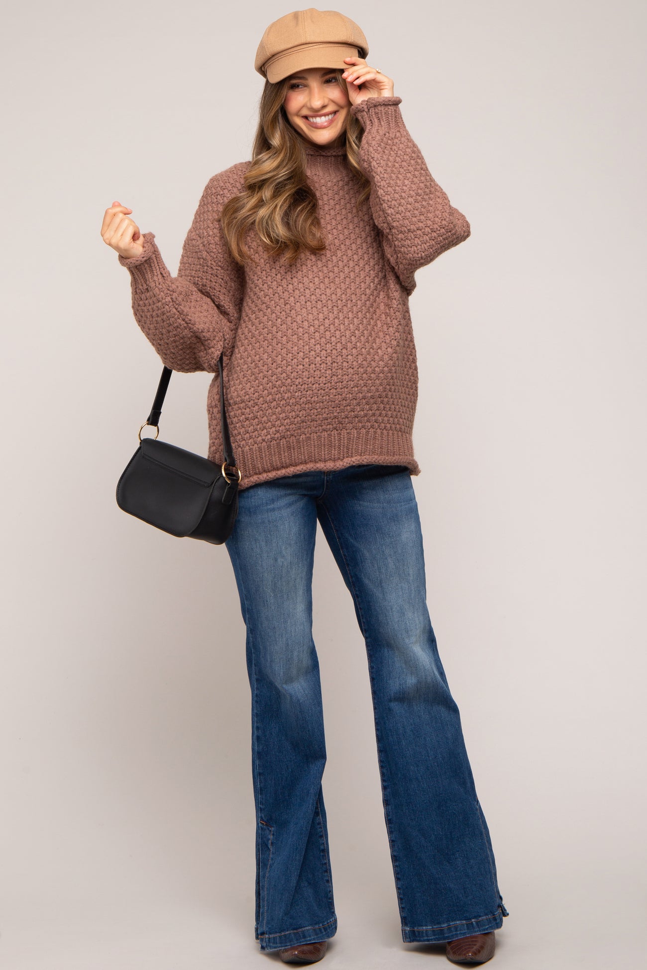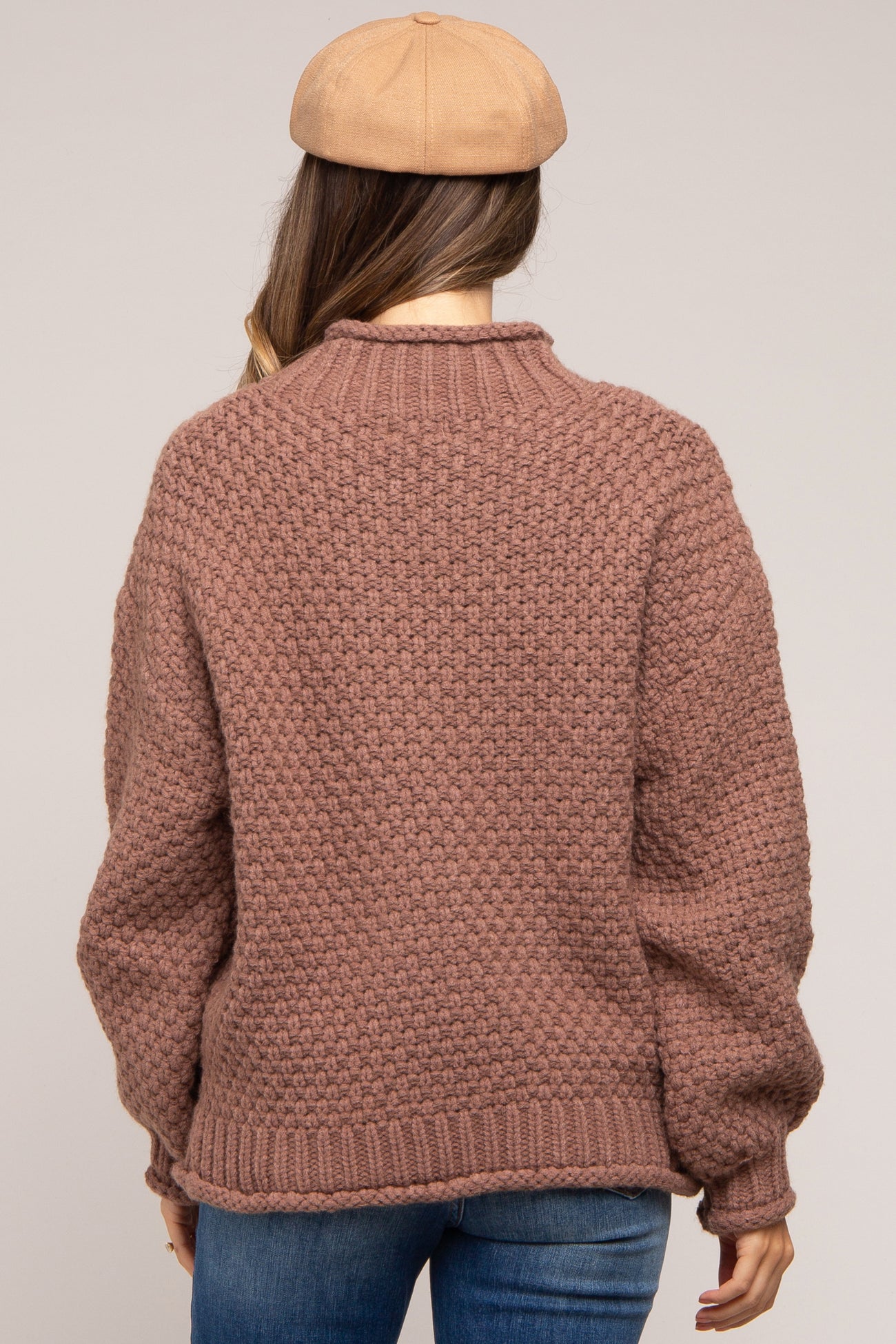 Mocha Chunky Knit Mock Neck Maternity Sweater