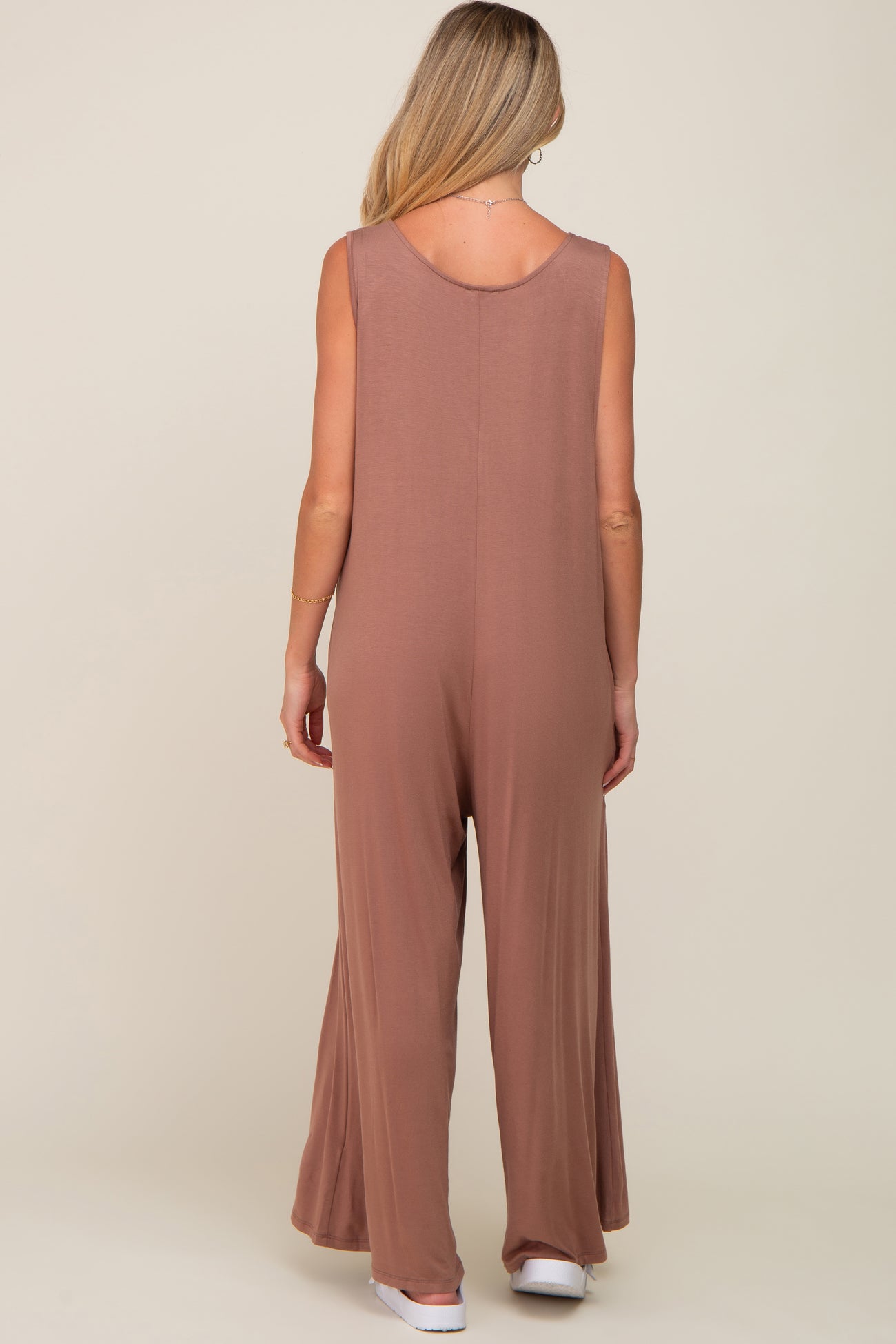 Mocha Deep V Sleeveless Wide Leg Maternity Jumpsuit