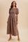 Mocha Floral Smocked Puff Sleeve Maxi Dress