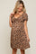A floral maternity dress featuring a sweetheart neckline, a cinched top with a tie, a smocked back, and short puff sleeves.