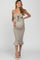 Mocha Gingham Print Smocked Fitted Self-Tie Maternity Midi Dress