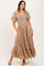 Mocha Leaf Print Smocked Square Neck Puff Sleeve Maxi Dress