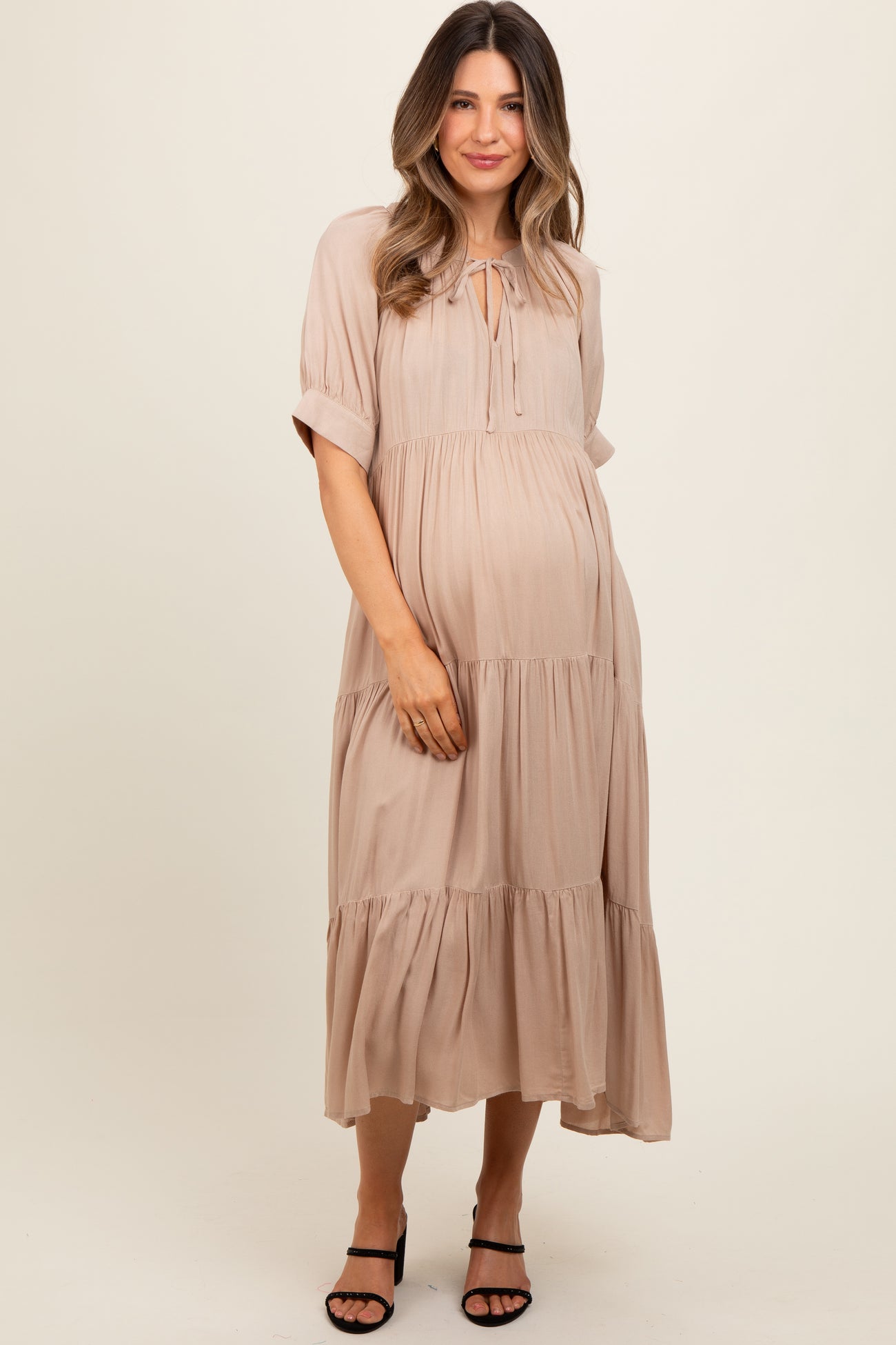 Mocha Lightweight Flowy Tiered Maternity Maxi Dress