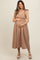 Mocha Linen Shoulder Tie Maternity Midi Dress