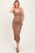 Elevate your maternity style with our Mocha Mesh Ruched Fitted Maternity Midi Dress. Crafted from soft, breathable mesh fabric, this dress features elegant ruching that beautifully accentuates your baby bump while providing a flattering silhouette. The fitted design and midi length offer a chic and sophisticated look perfect for special occasions or everyday wear. Adjustable spaghetti straps and a crossover neckline add feminine touches, ensuring comfort and style throughout your pregnancy. Pair with heels or sandals for a polished finish. Embrace effortless maternity elegance in this must-have dress!