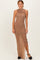 Mocha Mesh Ruched One Sleeve Maxi Dress