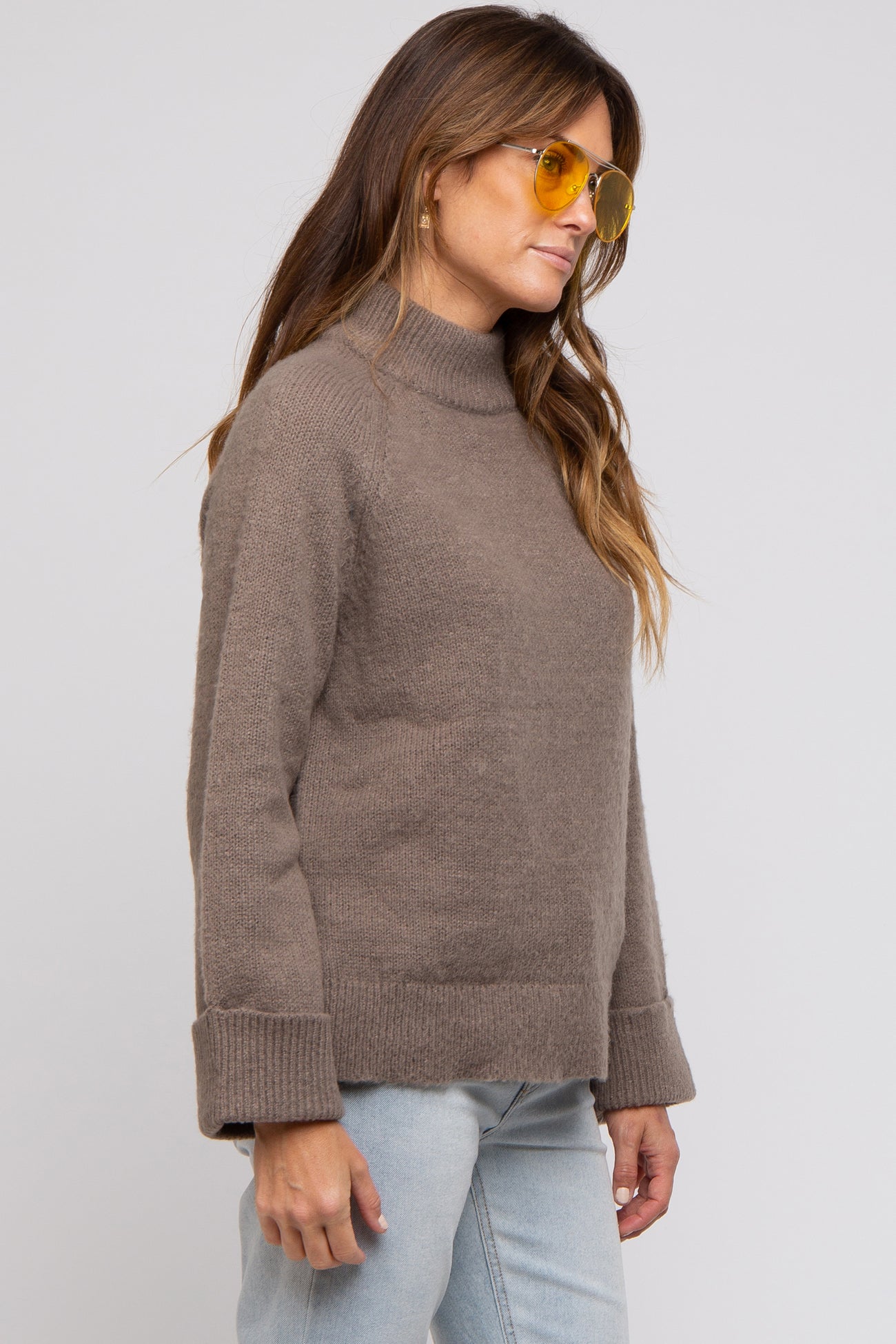 A solid chunky knit sweater with contrasting ribbed cuff neckline and sleeves.