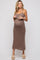 An open knit crochet maternity dress featuring adjustable straps and a scoop neckline. Dress is lined.