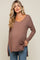 A solid long sleeve maternity knit top with a v-neckline and two side slits.