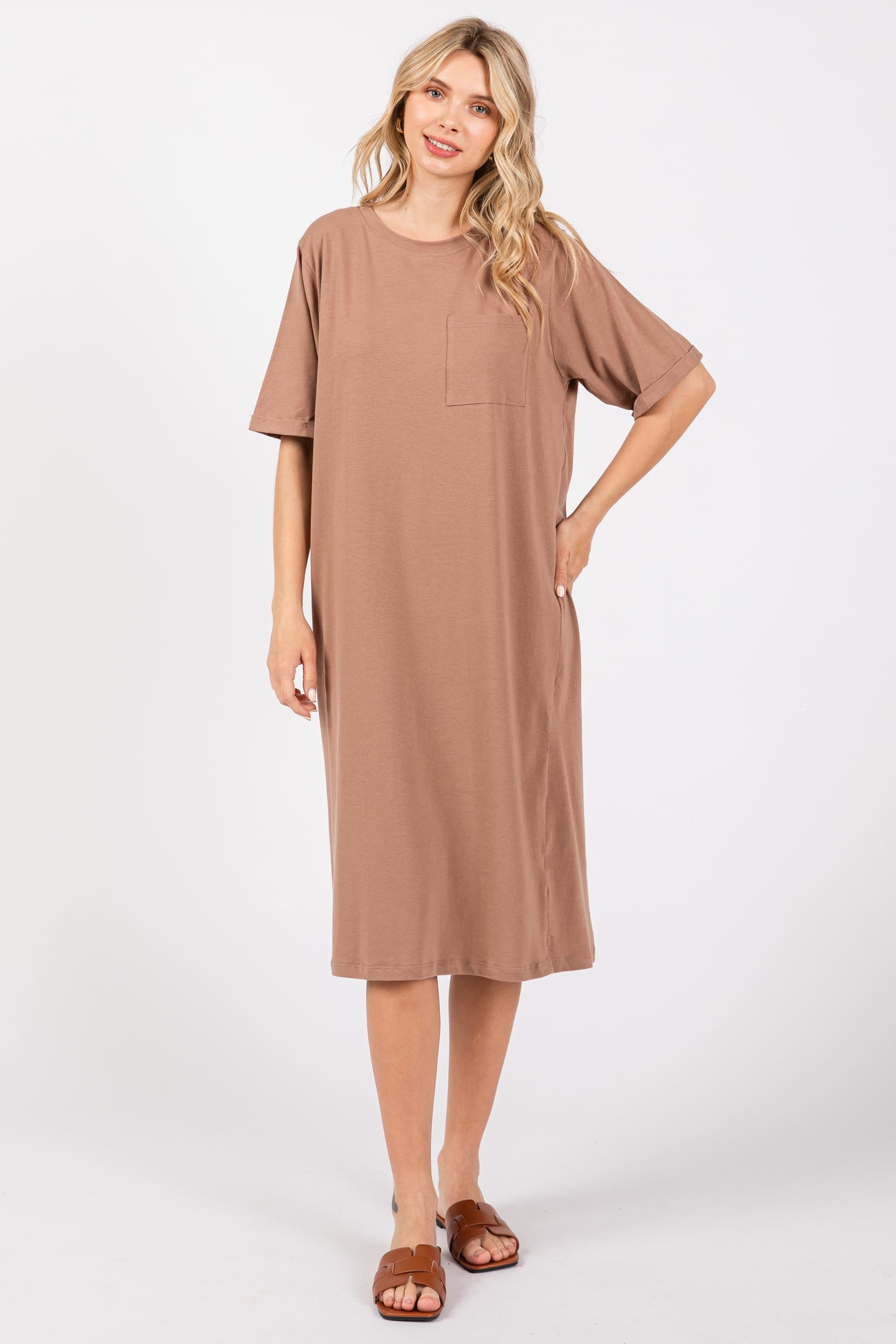 Mocha Oversized Round Neck T-Shirt Maternity Dress