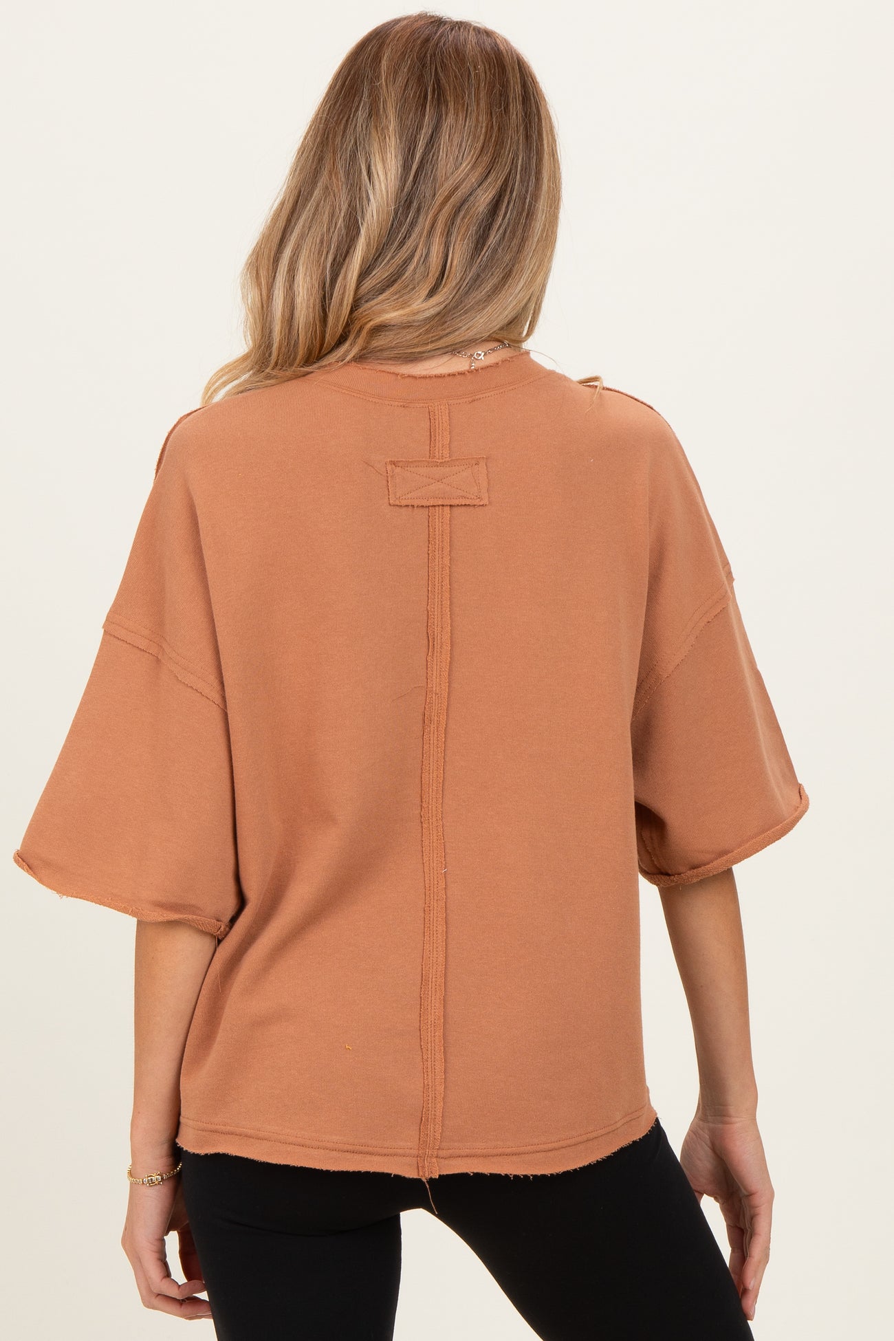 Mocha Raw Cut Edge Maternity Boxy Tee