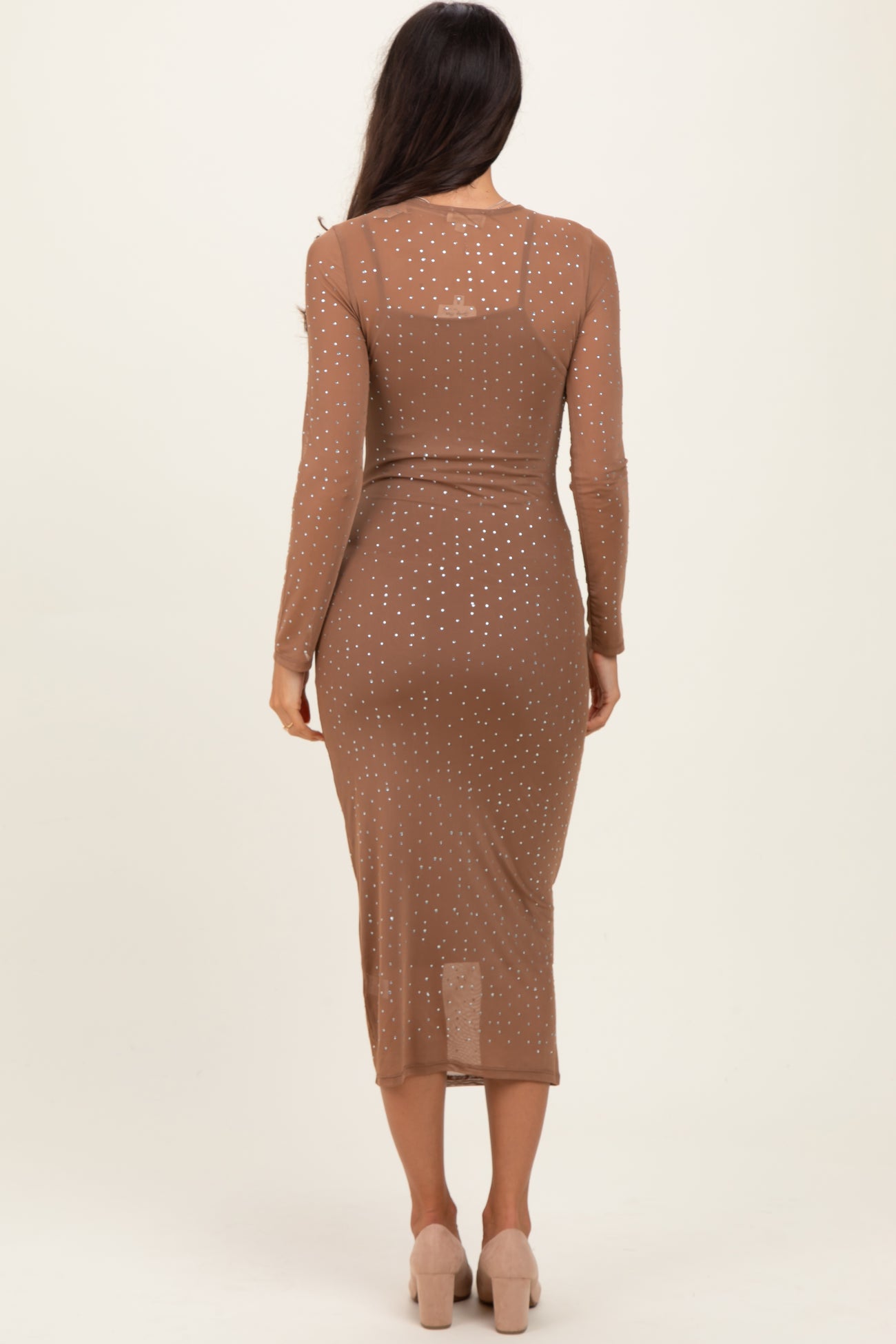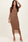 Mocha Rhinestone Mesh Long Sleeve Midi Dress