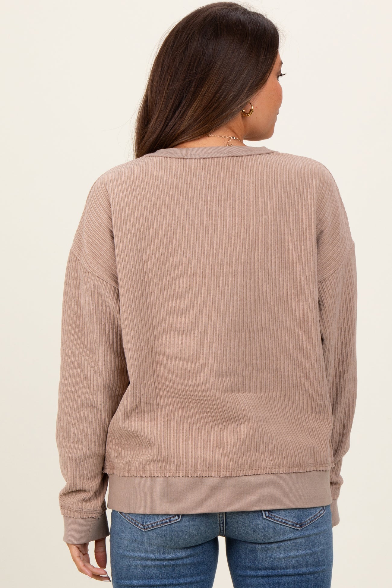 Mocha Ribbed Brushed Knit Maternity Pullover Top