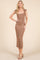 Mocha Ribbed Cap Sleeve Cutout Midi Dress