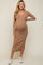 Mocha Ribbed Front Button Long Sleeve Maternity Midi Dress