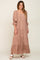 Mocha Square Neck Button Front 3/4 Bell Sleeve Maxi Dress