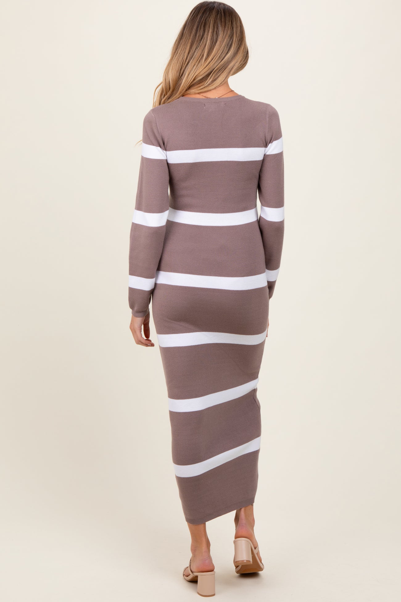 Mocha Striped Knit Long Sleeve Maternity Midi Sweater Dress