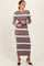 Mocha Striped Knit Long Sleeve Midi Sweater Dress