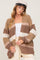 A striped open knit cardigan sweater featuring drop shoulder long sleeves, and open front, and side pockets.