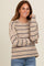 Mocha Striped Ribbed Knit Long Sleeve Top