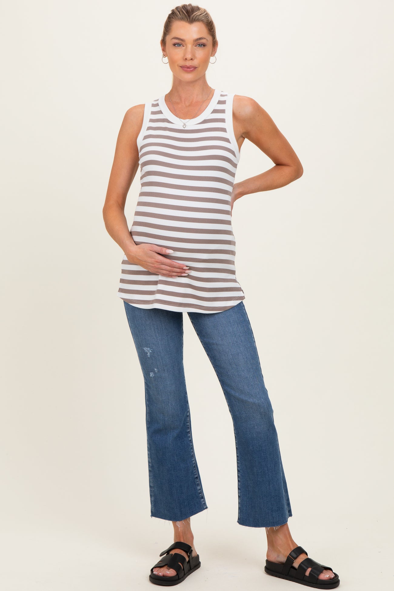 Mocha Striped Ribbed Maternity Tank Top