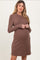 Mocha Textured Knit Ruffle Neck Long Sleeve Maternity Mini Dress