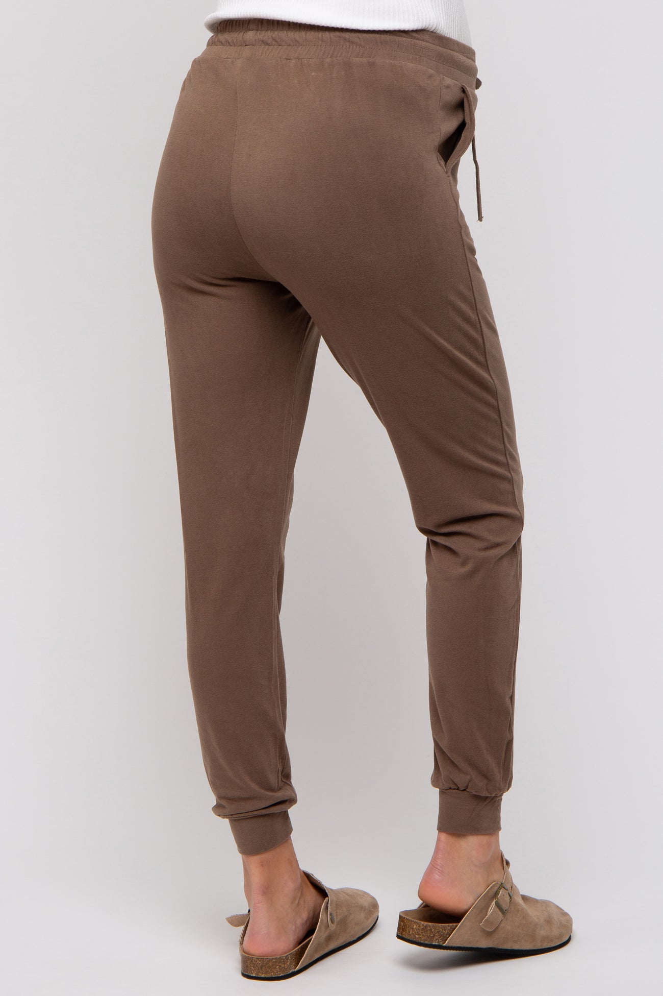 Mocha Ultra Soft Knit Drawstring Maternity Joggers