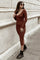 Mocha V-Neck Long Sleeve Fitted Maxi Dress