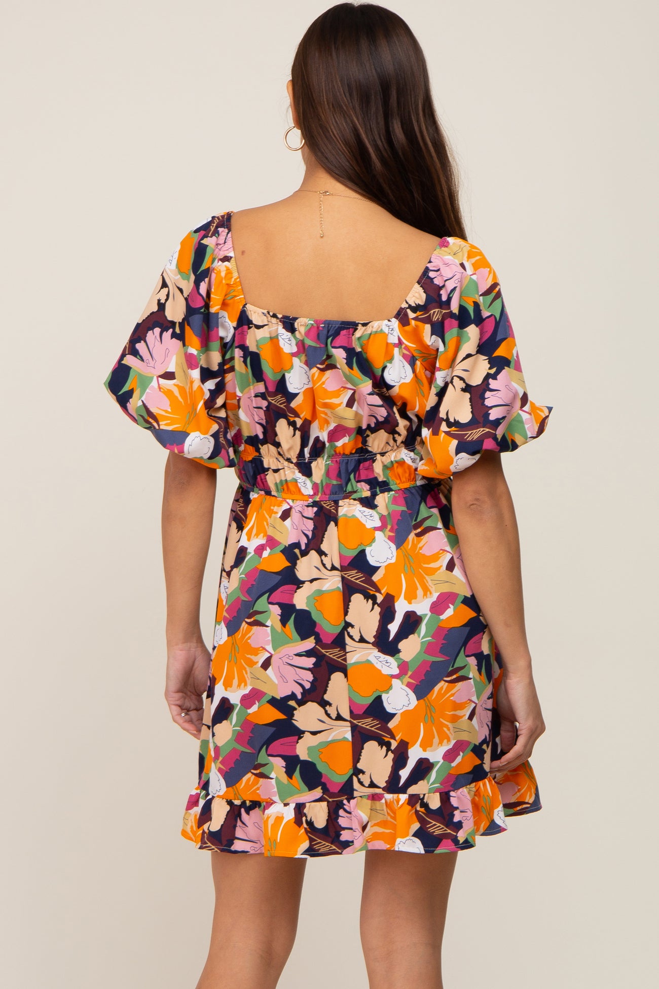 Multicolor Floral Pint Puff Sleeve Maternity Dress