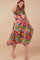 Multicolor Leaf Print Satin Tiered Plus Dress