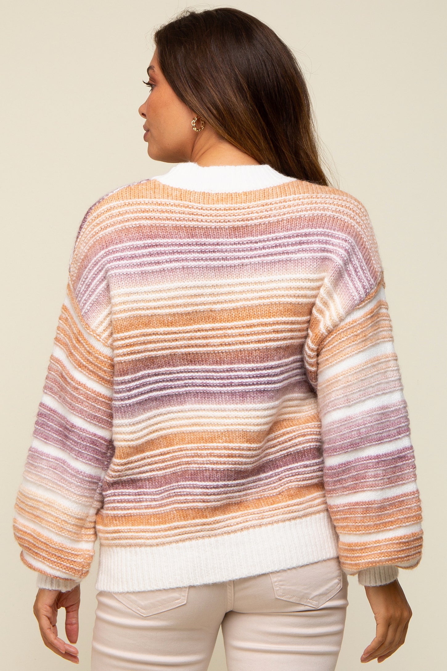 Multicolor Stripe Balloon Sleeve Maternity Sweater