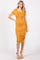 A solid hued fitted dress featuring short sleeves, a rounded neckline and side ruching.