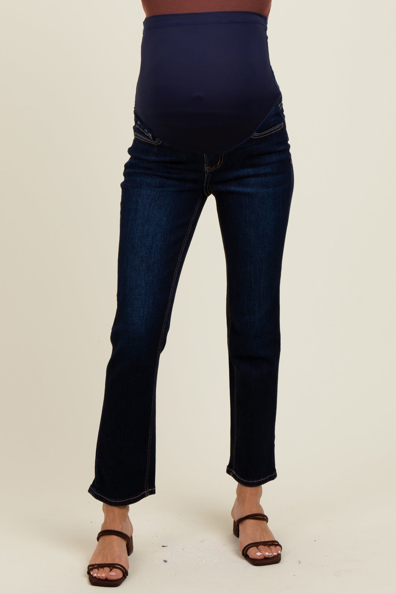 Navy Blue Classic Ankle Slim Straight Leg Maternity Jeans