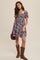 Navy Blue Floral Smocked Flutter Sleeve Back Tie Dress