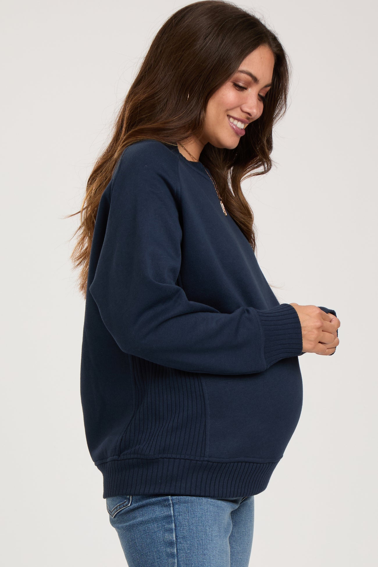 Navy Blue Pullover Maternity Terry Crewneck