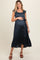Navy Blue Ruffle Short Sleeve Self Tie Maternity Dress