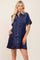 Navy Blue Satin Button Front Short Sleeve Dress