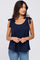 A solid hued tank top featuring a scoop neckline, bows at the shoulder and a rounded hem.