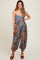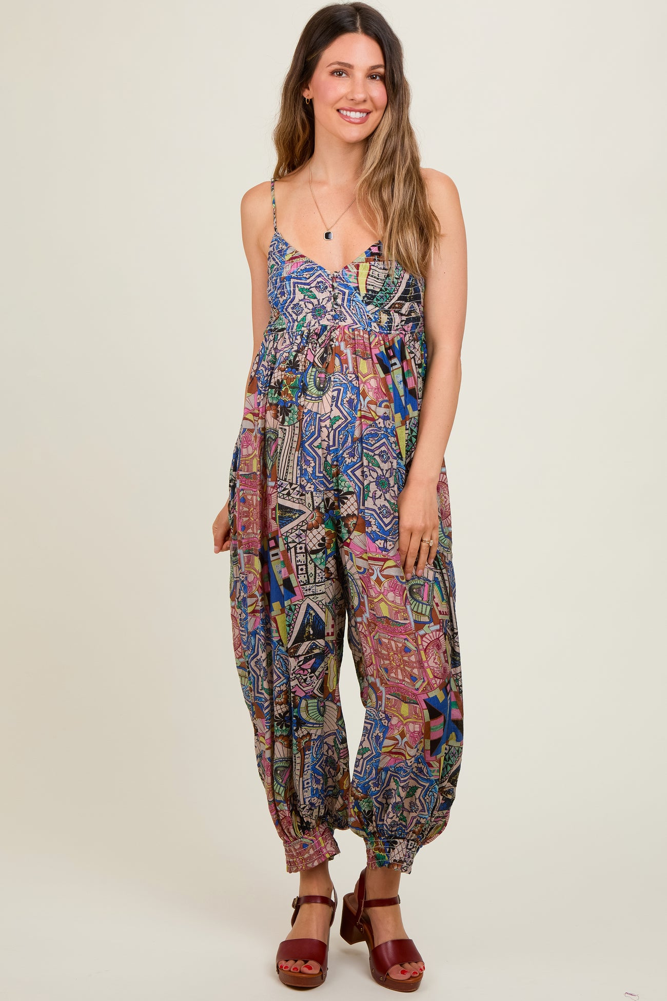 Navy Blue Smocked Button Front V-Neck Sleeveless Maternity Jumpsuit