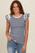 Navy Blue Striped Eyelet Lace Sleeve Blouse