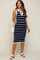 Navy Blue Striped Sleeveless Collared Maternity Midi Dress