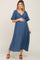 Navy Blue Textured Dot Front Tie Ruffle Sleeve Maternity Midi Dress