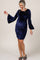 Navy Blue Velvet Ruched Bell Sleeve Maternity Dress