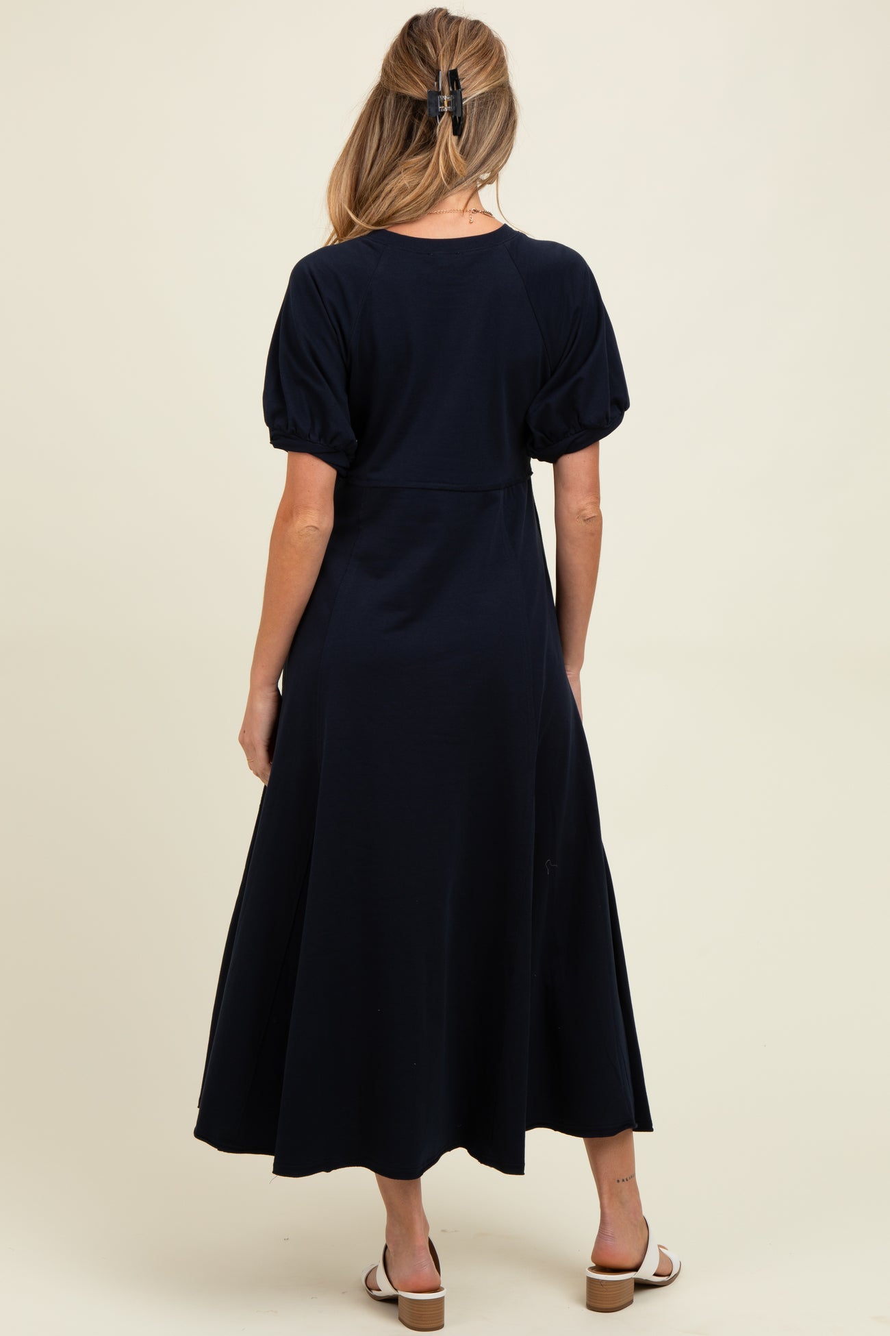 Navy Cotton Pocketed Maternity Midi Dress