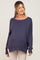 A maternity sweater featuring a crew neckline, ribbed trim, exposed seam detailing, long sleeves and side slits.