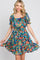 Navy Floral Chiffon Ruffle Accent Dress