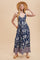 Navy Floral Crisscross Back Cutout Maxi Dress
