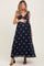 Navy Floral Embroidered V-Neck Maternity Midi Dress